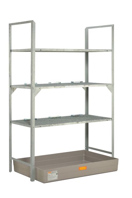 Všetky regály sú kompletne žiarovo pozinkované a súčasťou každej zostavy je záchytná vaňa z GRP (sklolaminát) bez roštu,